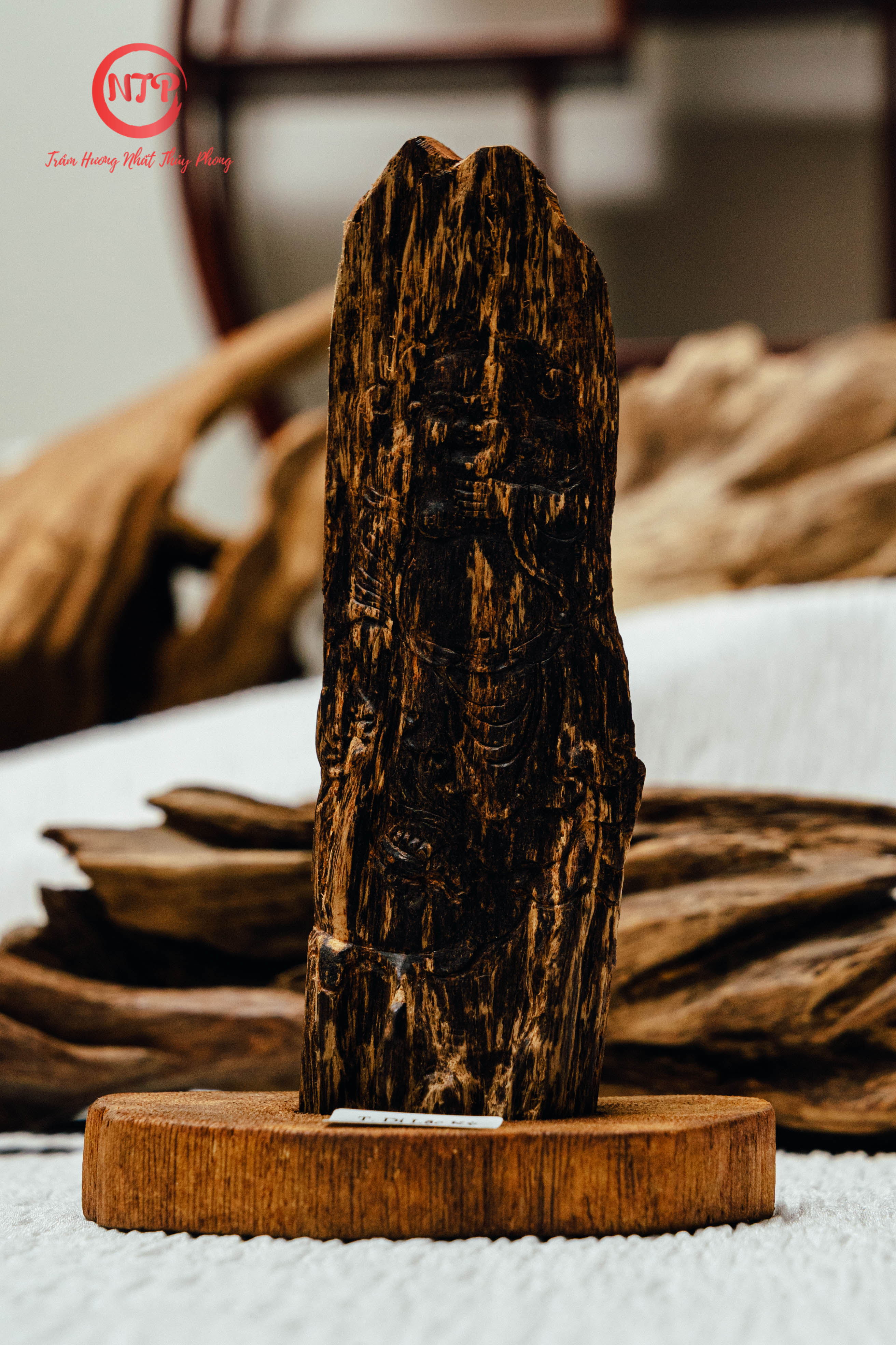 - Tượng được làm từ Trầm hương nên luôn toả ra mùi thơm, mang lại phong thuỷ tốt, giúp gia chủ luôn bình an và may mắn trong công việc.