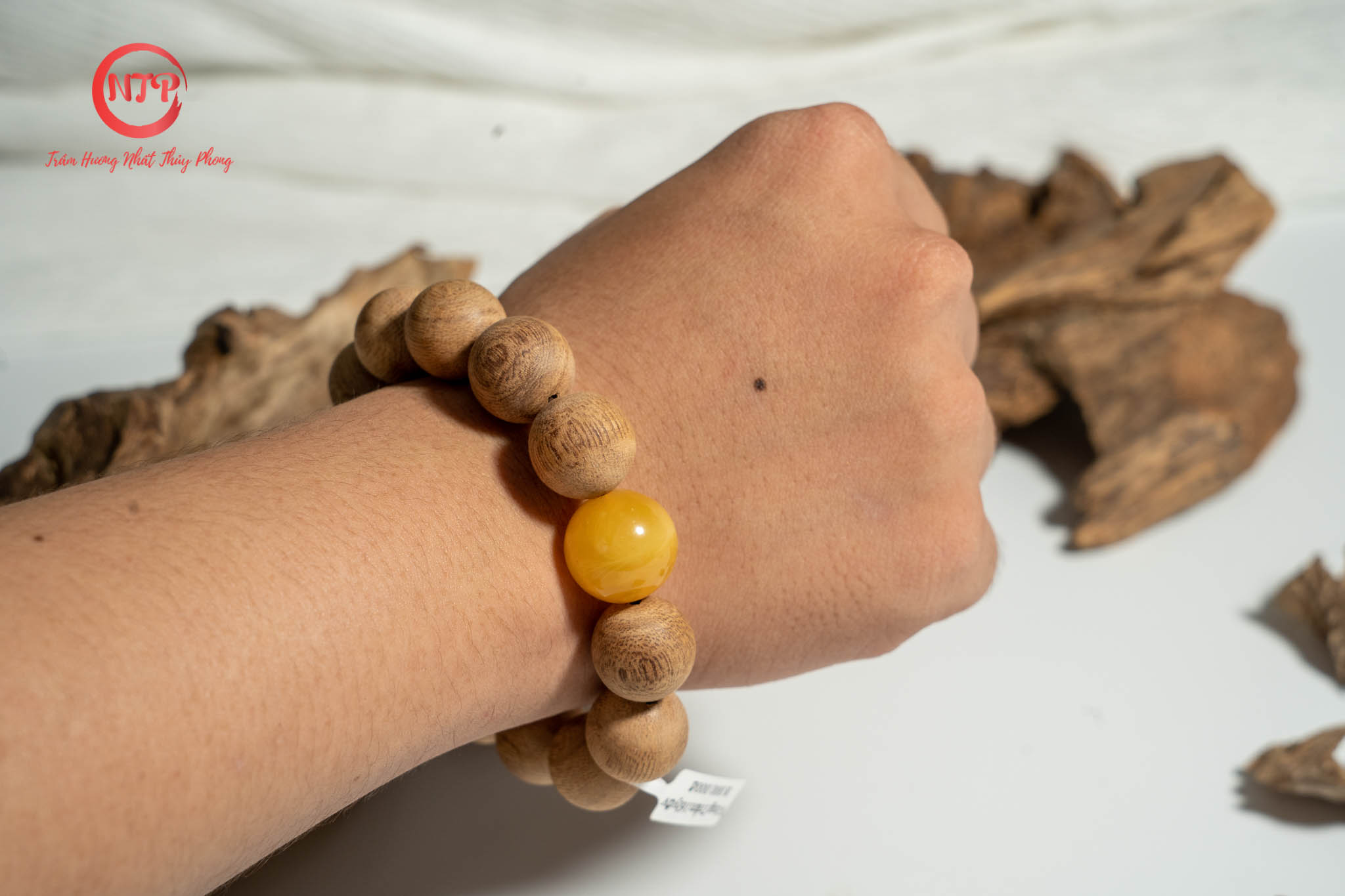 Vòng tay được làm từ Trầm xí kết hợp với Ngọc Mina vàng 16 ly, tạo nên một sự hài hòa, đẳng cấp, hiện đại và vô cùng sang trọng.