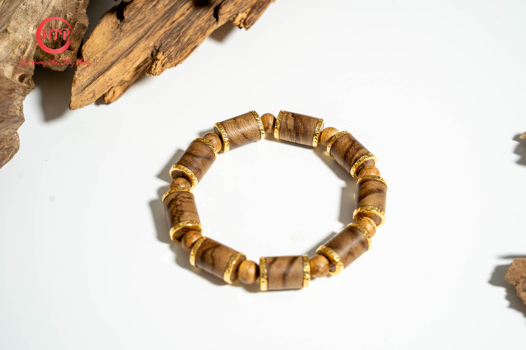 Vòng tay được thiết kế với 9 trụ trúc được bọc vàng tinh xảo với 9 hạt nhỏ mang đến 1 vẻ đẹp sang trọng, hiện đại và không kém phần trang nghiêm
